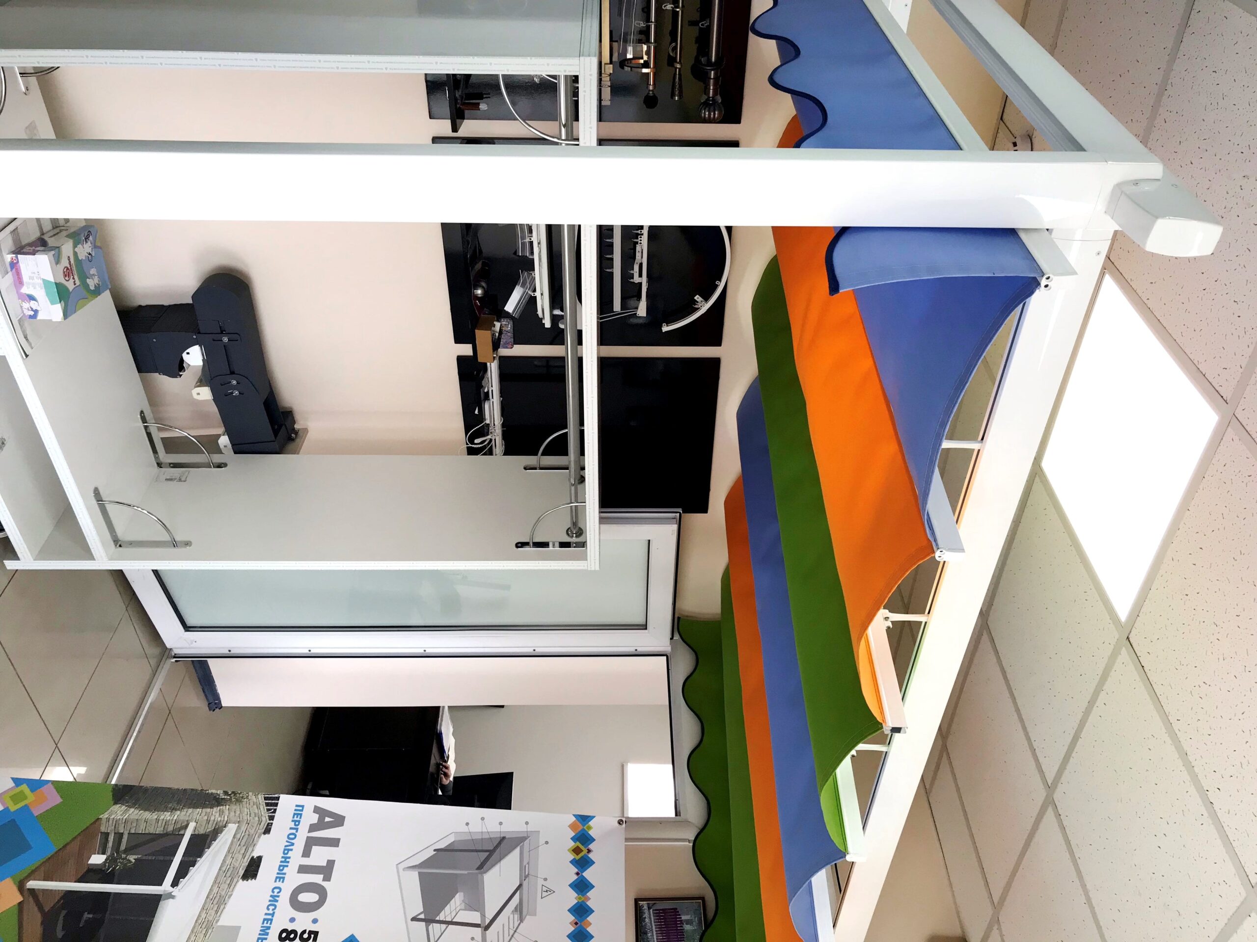 - Конструкция маркизы в сборе с полотном ткани и воланом 220 мм