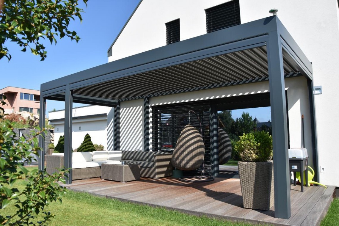 Пергола с алюминиевыми ламелями Arim — террасная система для защиты от солнца, дождя и ветра открытых площадок кафе, баров, ресторанов, отелей и частных домов.