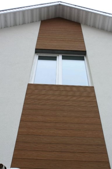 Сайдинг из древесно-композитного материала (ДПК) современный безопасный и экологичный материал(не выделяет токсических веществ в атмосферу, что подтверждается санитарно-гигиеническим сертификатом). Не поддерживает горение (группа пожарной безопасности Г2). Не деформируется при изменении температур от -40 до 70 градусов. Не требует покраски, вы сэкономите на покраске каждый год. При использовании стеновых панелей, вы уменьшаете уровень шума в доме на 30%. Зашивку можно производить вертикально или горизонтально. Монтаж доски не требует особых знаний и её установку может произвести любой человек.