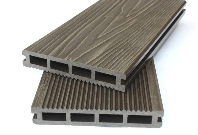 Террасная доска Classic 3D, венге 150×25×2200, Tardex. Пустотелая (ячеистая), имеет четыре одинаковые камеры, разделённые толстыми перегородками. Доска имеет цвет ВЕНГЕ, тёмно-коричневый глубокий цвет. Отличительной особенностью данной доски является поверхность, она двухсторонняя, с одной стороны гладкая с визуализацией спила натурального дерева, с другой поверхность рифлёная (противоскользящая). Применяемые сорта древесины для изготовления, только твёрдых пород. Имеет линейное расширение до 1%, при температурном режиме.