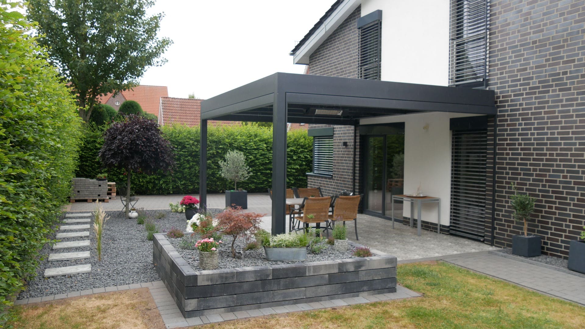 Перголу можно использовать под дождем до класса производительности 2 (56 л / м² в час) согласно DIN EN 13561