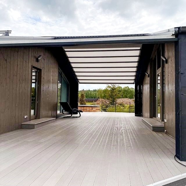 Террасная доска (или декинг) — идеальный материал для наружного монтажа пола веранд, террас, бассейнов, беседок, пирсов. Материал легко узнаваем по рифленой лицевой поверхности. Этот облицовочный материал обладает отличной устойчивостью к природным неблагоприятным влияниям вроде повышенной влажности и резкой смены температур. Из нее можно возвести самые разные сооружения — от веранды до настила на летней территории заведения общепита.